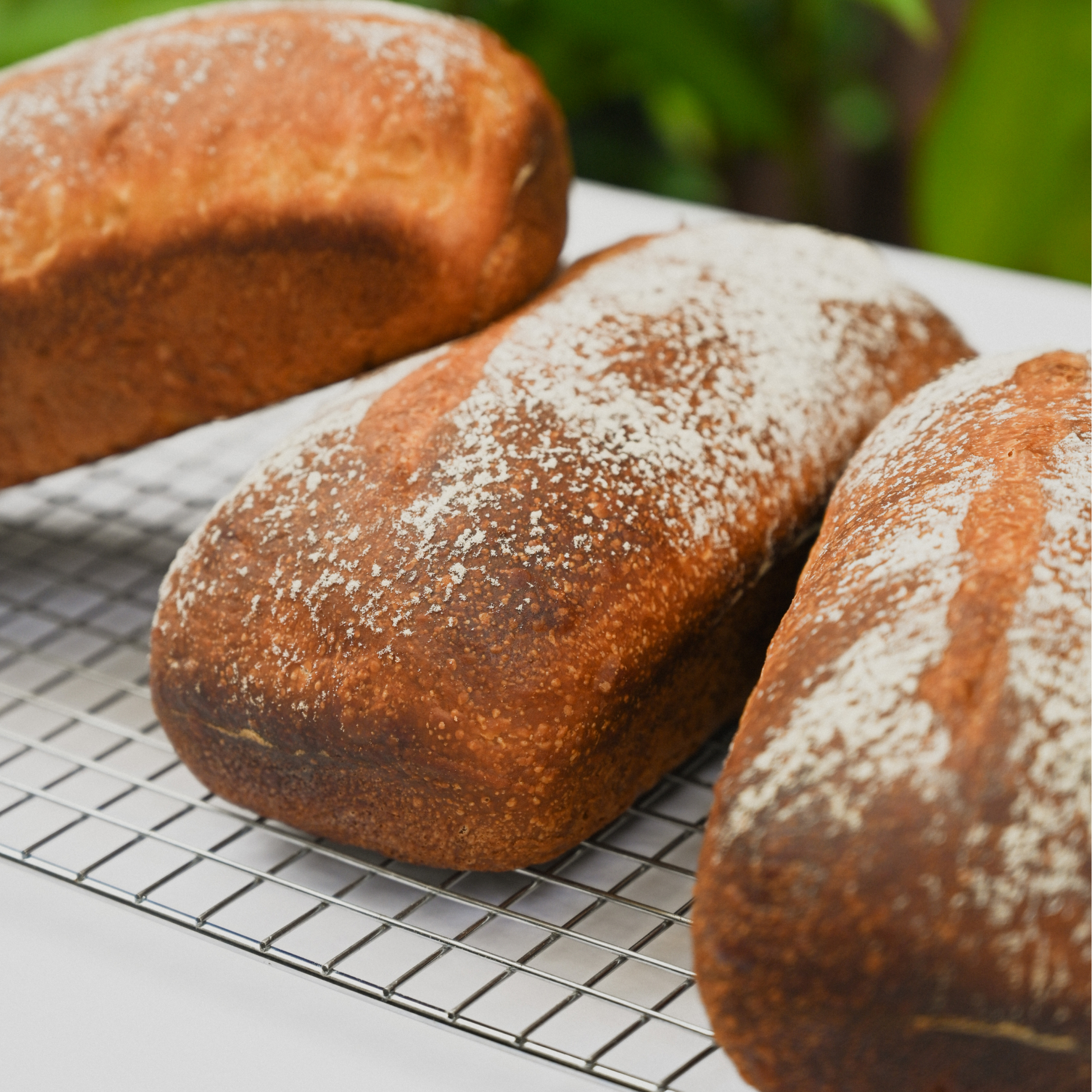 Best consumed upon arrival, but you can store it on the kitchen counter at room temperature for up to two days. If you’ve sliced into it, you can leave it cut side down on the chopping board. You may also place the sliced loaf in a ceramic bread box or a clean paper bag. Never store bread in the refrigerator, or else it will dry out. By the third day, you can place the bread in a large Ziplock bag, but please note that the crust will soften and your bread will require toasting to refresh it. For storage up to three months in the freezer, wrap your bread in parchment paper and place it back in the Ziplock bag.