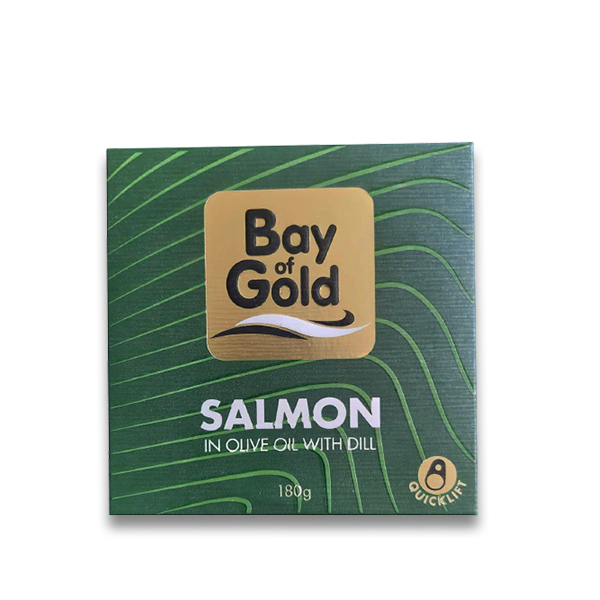 The Bay of Gold Salmon in Olive Oil with Dill is made with premium quality salmon from New Zealand. They are delicate flakes, with a tender texture and a beautiful richness. The olive oil enhances this incredible flavor, and the dill adds an incomparable freshness with a slight hint of citrus.