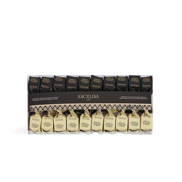 Angelina pralinés are made from the best hazelnuts from Piemont, in Italy. This hazelnut variety has a geographical appellation controlled quality guarantee. The power of roasted hazelnut combined with tasty notes of white or dark chocolate creates an irresistible recipe. The pralines have a smooth texture that melts in your mouth, while the crunchy hazelnuts add a delightful contrast.