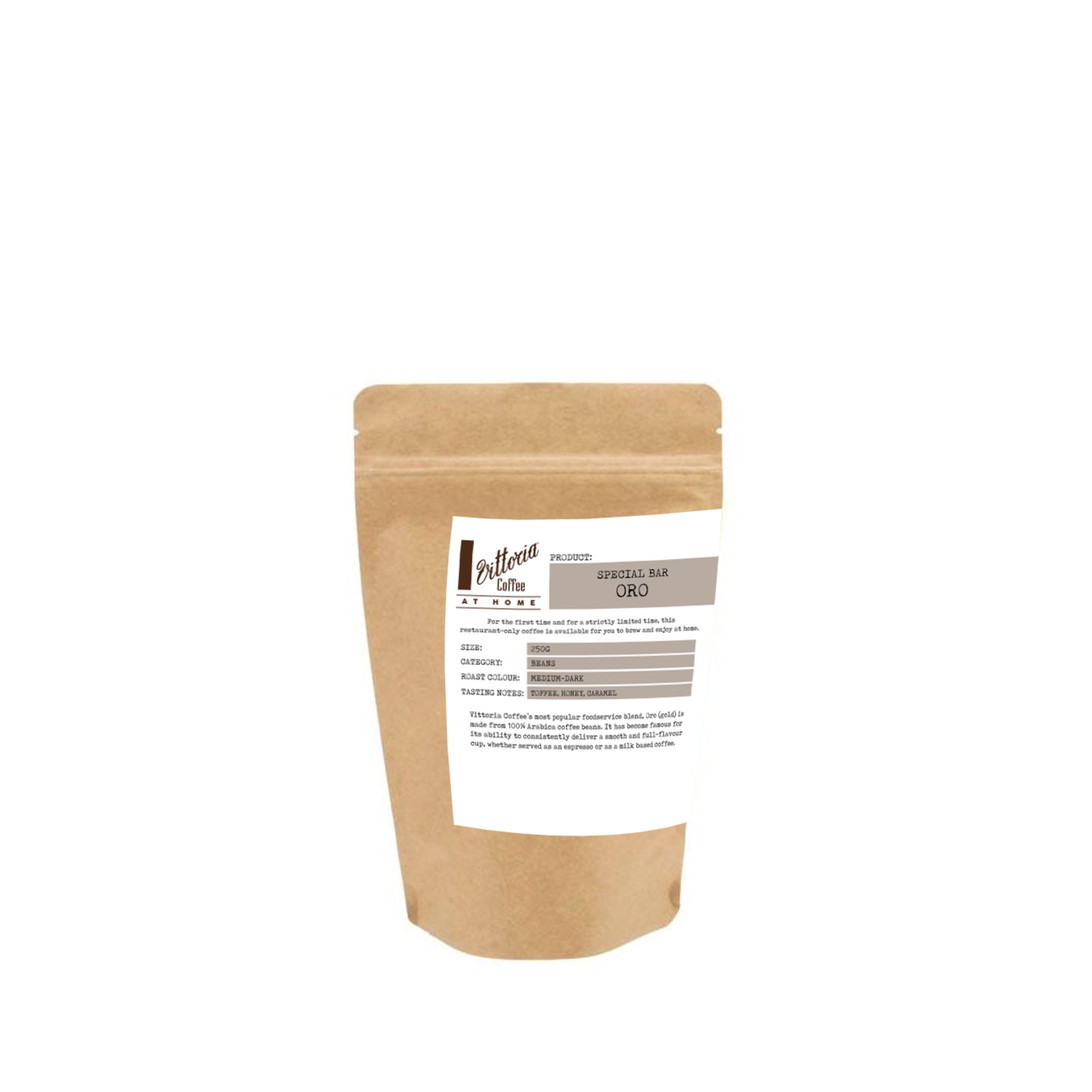 The Oro Special Bar blend is the result of 60 years of roasting tradition. Vittoria Coffee uses only the finest 100% Arabica beans for this medium-dark roast, and their well-calibrated process produces a consistently smooth and full-flavored cup of coffee. The secret is in a blend of washed Central American and unwashed South American beans. The unwashed coffee provides strength and body, and the washed beans bring in the right amount of acidity and sweetness for a truly remarkable coffee with notes of toffee, honey, and caramel.