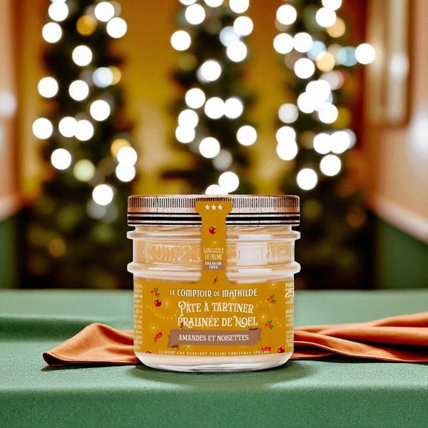 This spread is a luxurious ode to praline tradition, where roasted almonds and hazelnuts are finely ground into a silky paste and swirled with caramelized sweetness. The result is a creamy yet textured delight that coats the palate with nutty depth and gentle holiday warmth. The almonds bring a subtle earthiness, the hazelnuts a buttery sweetness, and together they form a duet that is both nostalgic and sophisticated. Unlike mass-market spreads, Mathilde’s version is crafted without palm oil, ensuring a pure, authentic taste that celebrates French artisanal savoir-faire. Each spoonful captures the indulgence of holiday pralines, transforming everyday moments into festive rituals. It is comfort and celebration in a jar — smooth, nutty, and utterly irresistible.