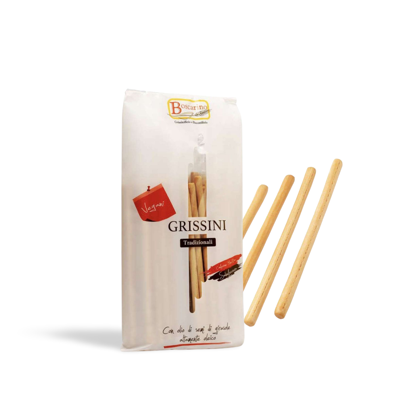 Grissini are Italian breadsticks, long and thin, with a crisp and dry texture. They’re found in most Italian restaurants and eateries. Boscarino uses only the best ingredients for their grissini, and uses no preservatives, no palm oil, no hydrogenated fats, and no GMOs. Prepared with soft wheat flour and natural yeast, they are fragrant and highly digestible, with that classic flavor you expect of breadsticks.