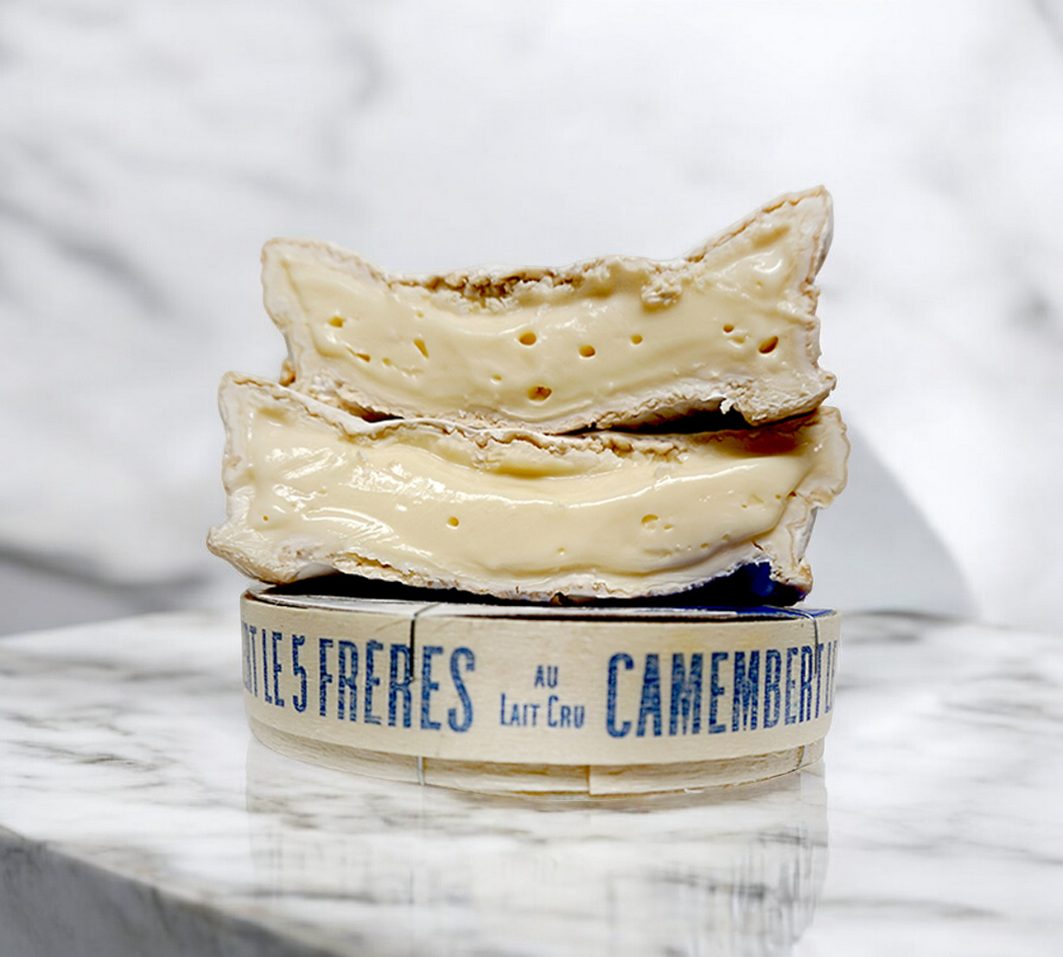 Les 5 Frères Farmhouse Camembert is a testament to tradition and family dedication. The farm is located in Bermonville, in the Seine-Maritime department, halfway between Rouen and Le Havre. Although this Camembert does not have the “Camembert de Normandie AOP” designation, its production adheres strictly to the specifications of the appellation.