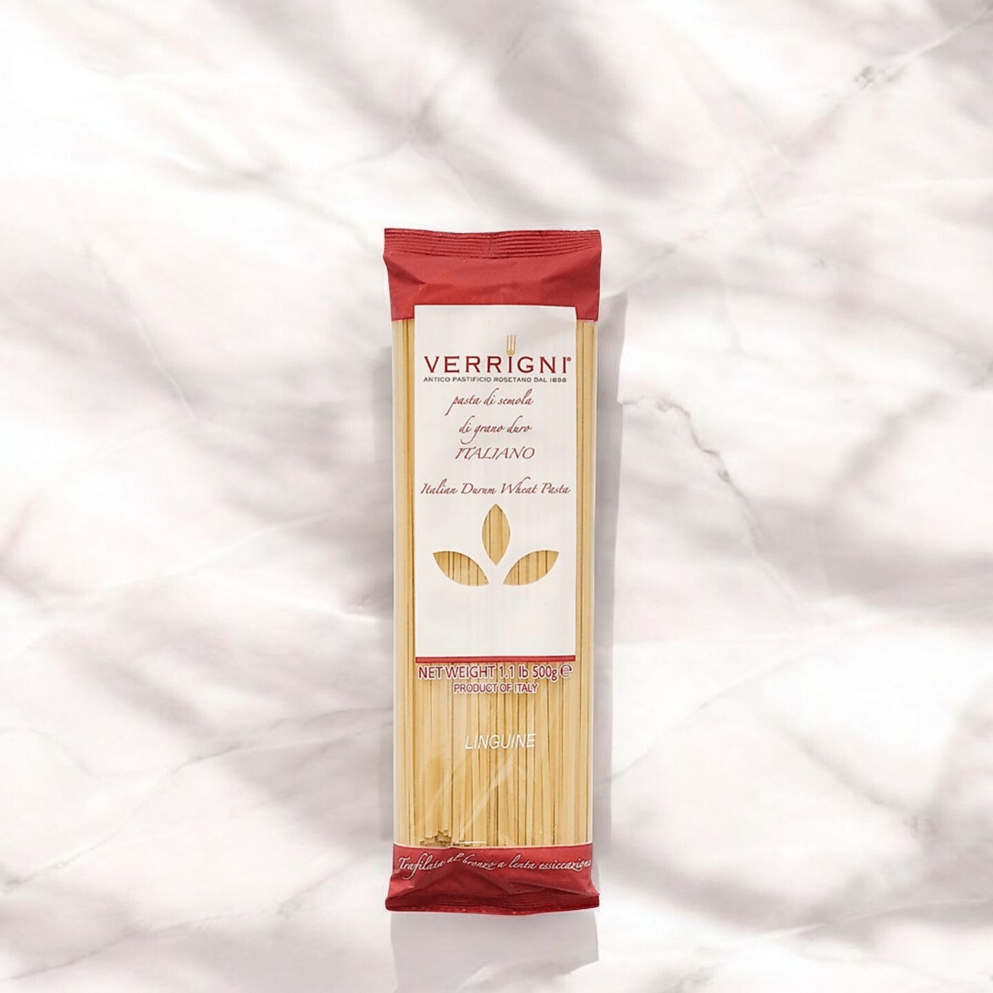 Verrigni’s tradition of crafting fine pasta dates back to its founding in 1898 by Luigi Verrigni in Roseto degli Abruzzi, Italy—a region celebrated for its fertile soil and high-quality durum wheat. Over the years, the Verrigni family has preserved their culinary heritage, focusing on sourcing the best local ingredients and maintaining stringent artisanal practices. One intriguing aspect of this historic brand is their use of ‘gold dies’ during the pasta extrusion process—a technique unique to Verrigni, which reduces the stress during shaping and enhances the surface of the pasta for superior sauce adherence. This attention to detail not only pays homage to Italian craftsmanship but also sets a gold standard in pasta production, ensuring that every bite of Verrgini Linguini 021 is a celebration of tradition and quality. Celebrated by chefs globally and renowned for their innovative approach to pasta-making, Verrigni continues to be a proud emblem of authentic Italian gastronomy.