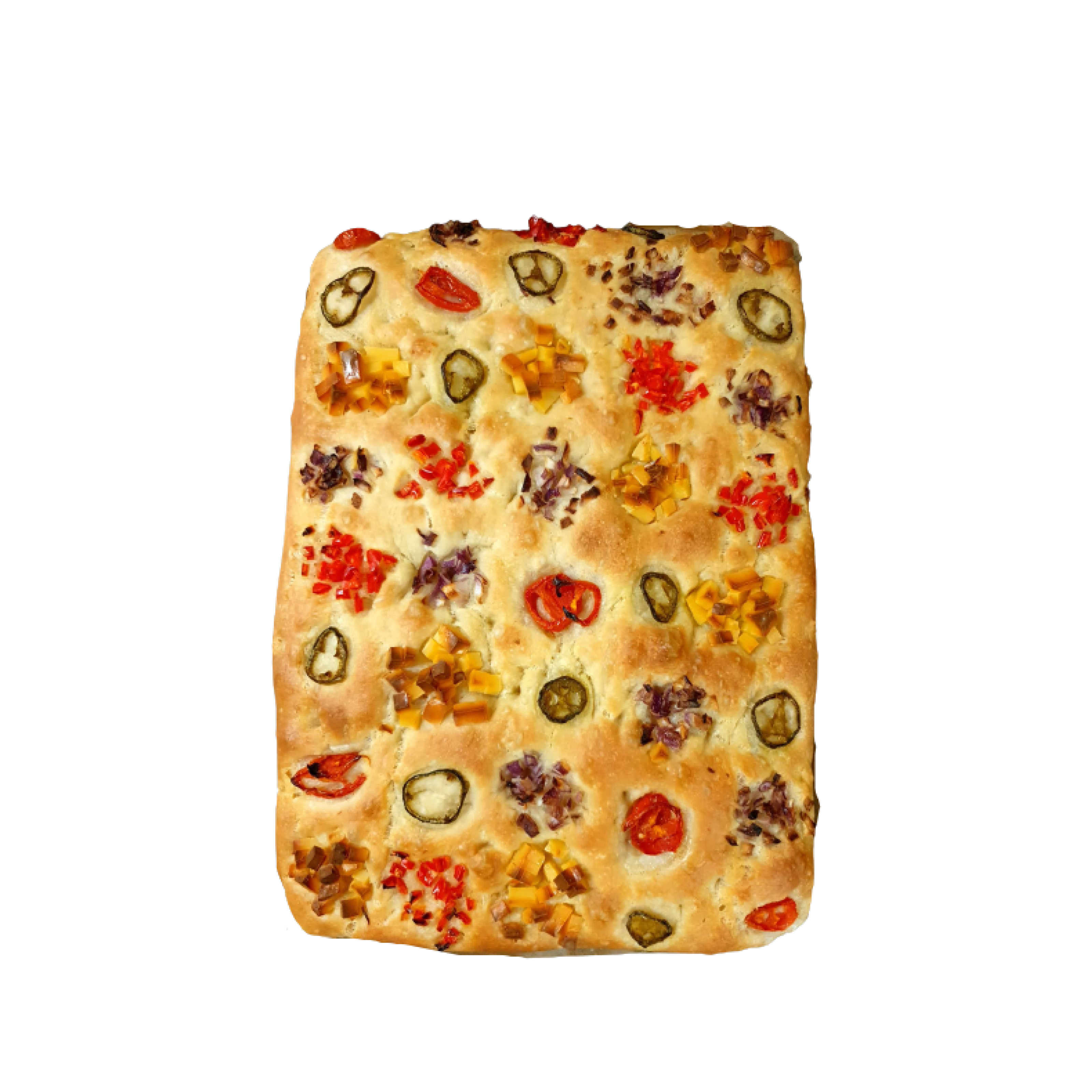 A flat, oven-baked bread, the focaccia has a pizza texture. It has a nice, flavorful, crispy crust, thanks to olive oil and herbs. Its insides are soft and chewy, and completely delicious. Focaccia by Baked by G comes in two mouth-watering flavors: